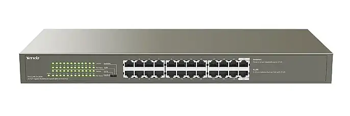 Switch Tenda PoE que ofrece 24 puertos RJ45 Base-TX de 10/100/1000 Mbps. Los puertos 1-24 cumplen con el estándar IEEE 802.3af (potencia máxima de salida PoE: 15,4 W) y el estándar 802.3at (potencia máxima de salida PoE: 30 W). El conmutador ofrece una potencia de salida máxima PoE de 225W y puede suministrar energía e intercambiar datos con AP, cámaras IP y Teléfonos IP a través de cables CAT5. También proporciona modos de administración simples como CCTV, VLAN y aislamiento para ayudar a reducir los costos de cableado de terminales IP como AP y cámaras IP.